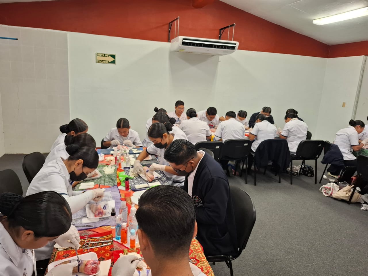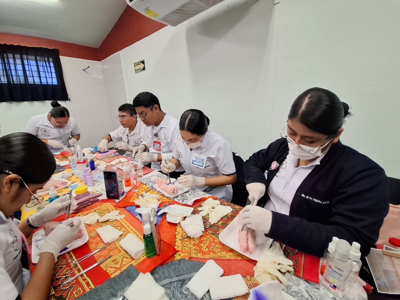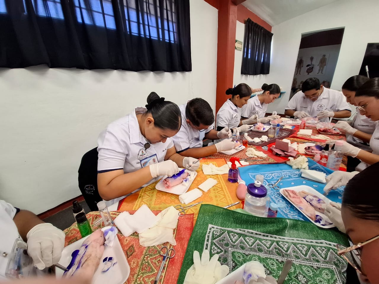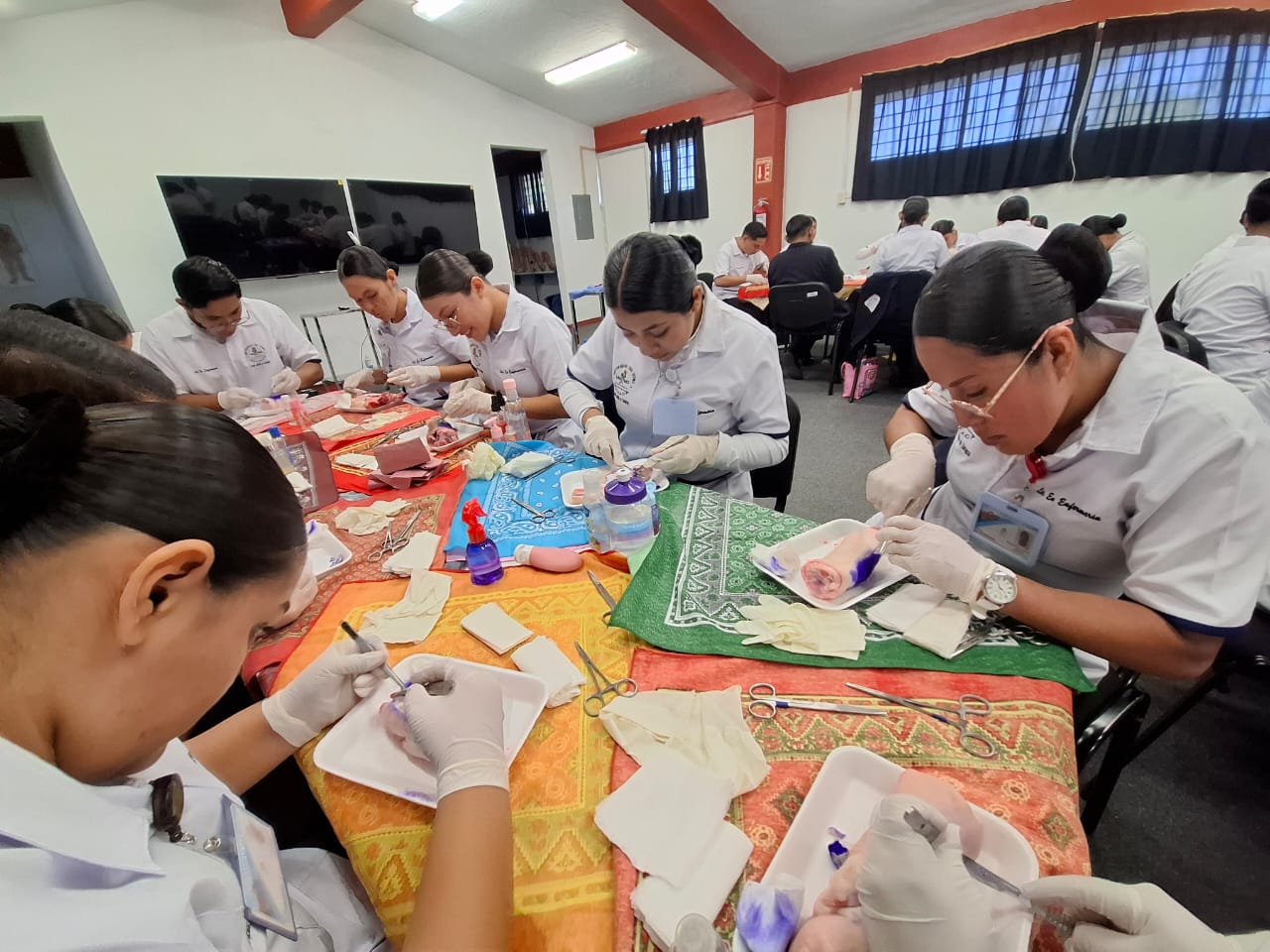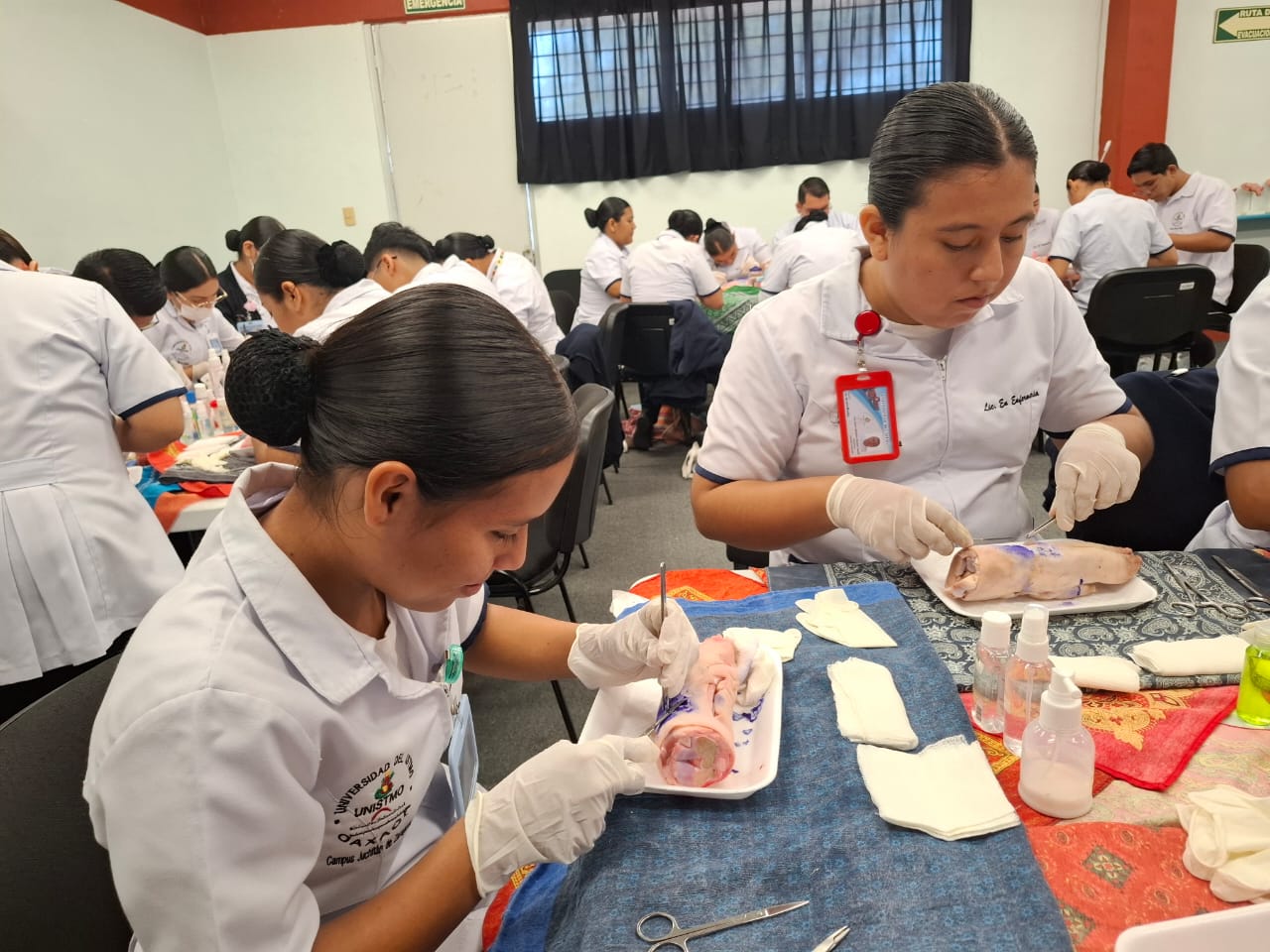 Como parte de la asignatura Bases de la Enfermería Clínica, se realizó el taller de curación de heridas con la participación de estudiantes de tercer semestre de la Licenciatura en Enfermería, como parte de sus prácticas de simulación clínica.